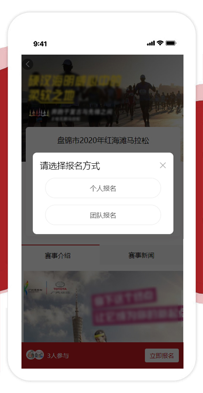 包含个人报名和团队报名。