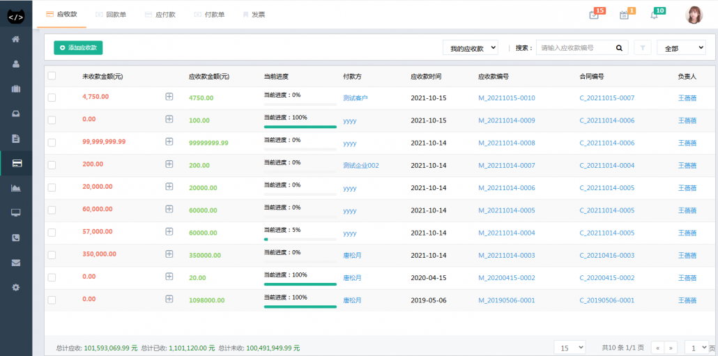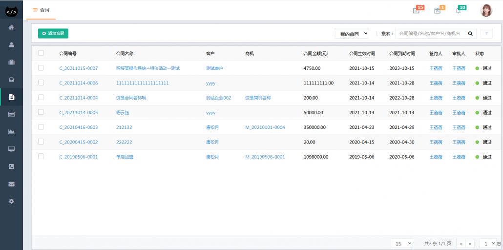 合同管理:合同、开票、回款